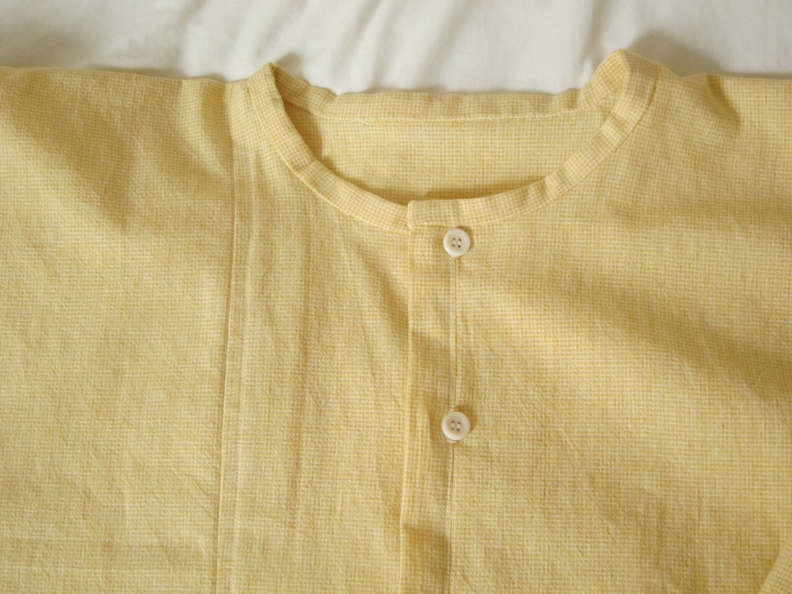 外見は小さなバンドカラーのシャツなのですが、衿と衿あき以外のパーツは直線でできています。