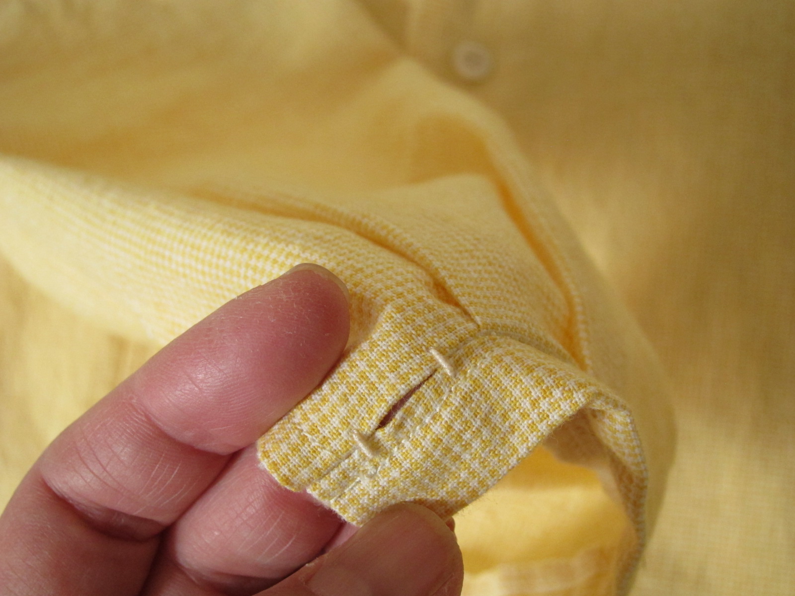ボタンホールは、ミシンでボタンホールを作って穴を開ける、という作り方ではなく、縫い目を利用して(ボタンホールの部分だけ縫わずに開ける)作る、というもので、その作り方を思いついた人はすごい! とびっくりしました!ボタンホールの両端には「閂(かんぬき)どめ」という補強のステッチを手縫いでするのですが、それをしながら「昔、このシャツを作っていた人は、着る人の無事や健康を祈りながら、こうやって手を動かしていたのかもしれない」なんて想像をしました。
